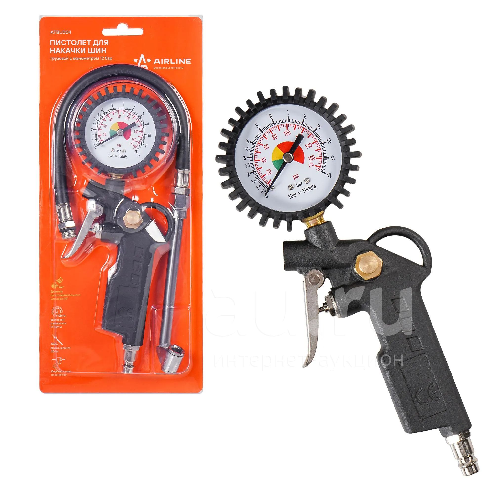 AIRLINE ATBU004 Пистолет для накачки шин грузовой с манометром 12 АТМ (ATBU004)