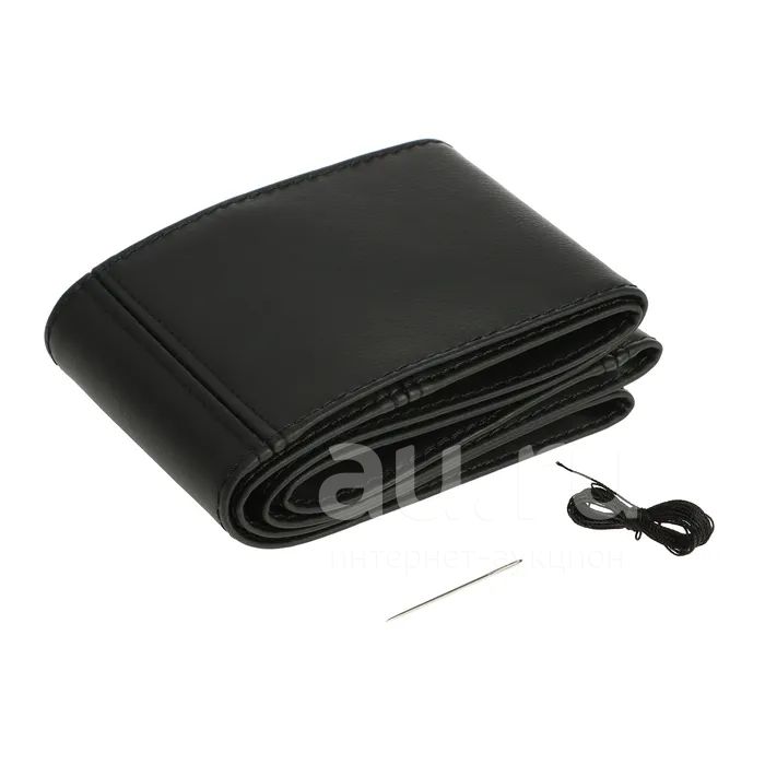 Оплетка на руль сшивная, экокожа, черная, нить, игла, размер L, 38-40...